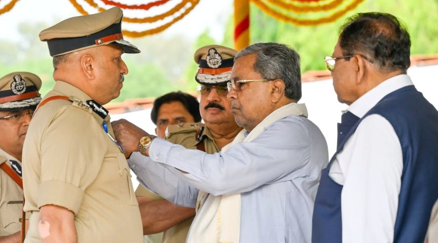 ಬೆಂಗಳೂರಿನ ಫೀಲ್ಡ್ ಮಾರ್ಷಲ್ ಮಾಣಿಕ್ ಷಾ ಪರೇಡ್ ಮೈದಾನದಲ್ಲಿ ಇಂದು ಬೆಳಿಗ್ಗೆ ಪೊಲೀಸ್ ಧ್ವಜ ದಿನಾಚರಣೆ ಸಮಾರಂಭದಲ್ಲಿ ಪದಕ ಪ್ರದಾನ ಮಾಡಲಾಯಿತು. ಈ ವೇಳೆ ಗೃಹ ಸಚಿವರಾದ ಡಾ. ಜಿ.ಪರಮೇಶ್ವರ ಅವರು ಸೇರಿದಂತೆ ಹಿರಿಯ ಪೊಲೀಸ ಅಧಿಕಾರಿಗಳು ಇದ್ದರು.