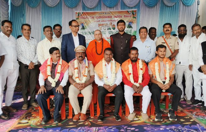 ಸಾಧಕರಿಗೆ ಸನ್ಮಾನ: ಗಣರಾಜ್ಯೋತ್ಸವ ಅಂಗವಾಗಿ ಸಮಾಜ ಸೇವಕರಾದ ಅಶೋಕ ಶನಿವಾರಂ, ನರಸಿಂಹಲು ಗಂಗನೋಳ, ಕಲ್ಯಾಣ ಕರ್ನಾಟಕ ಸಾರಿಗೆ ಇಲಾಖೆಯ ಶರಣಪ್ಪ ಹೂಗಾರ, ಶಿಕ್ಷಣ ಸಂಯೋಜಕ ರವೀಂದ್ರ ಚವ್ಹಾಣ, ಸಿಆರ್ ಪಿಎಫ್‌ ಗೆ ಆಯ್ಕೆಯಾದ ಯೋಧ ಸುರೇಶ, ಉರಗ ರಕ್ಷಕ ನರಸಿಂಹಲು ಅವರಿಗೆ ಸನ್ಮಾನಿಸಲಾಯಿತು.