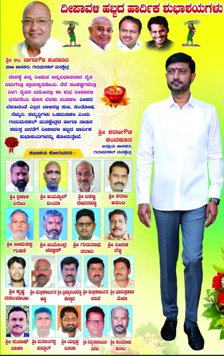 ರಾಜ್ಯದ ಜನರ ಬದುಕಿನ ಕತ್ತಲೆಯ ಕ್ಷಣಗಳು ಸರಿದು ಬೆಳಕು ಮೂಡಲಿ, ಈ ದೀಪಾವಳಿ ಶುಭ, ಸಂತೋಷ ಮತ್ತು ಸಮೃದ್ಧಿ ತರಲಿ ಎಂದು ಪ್ರಾರ್ಥಿಸುವೆ. ಎಲ್ಲರಿಗೂ ದೀಪಾವಳಿಯ ಶುಭಾಶಯಗಳು – ಶರಣಗೌಡ ಕಂದಕೂರ, ಶಾಸಕರು ಗುರುಮಠಕಲ್